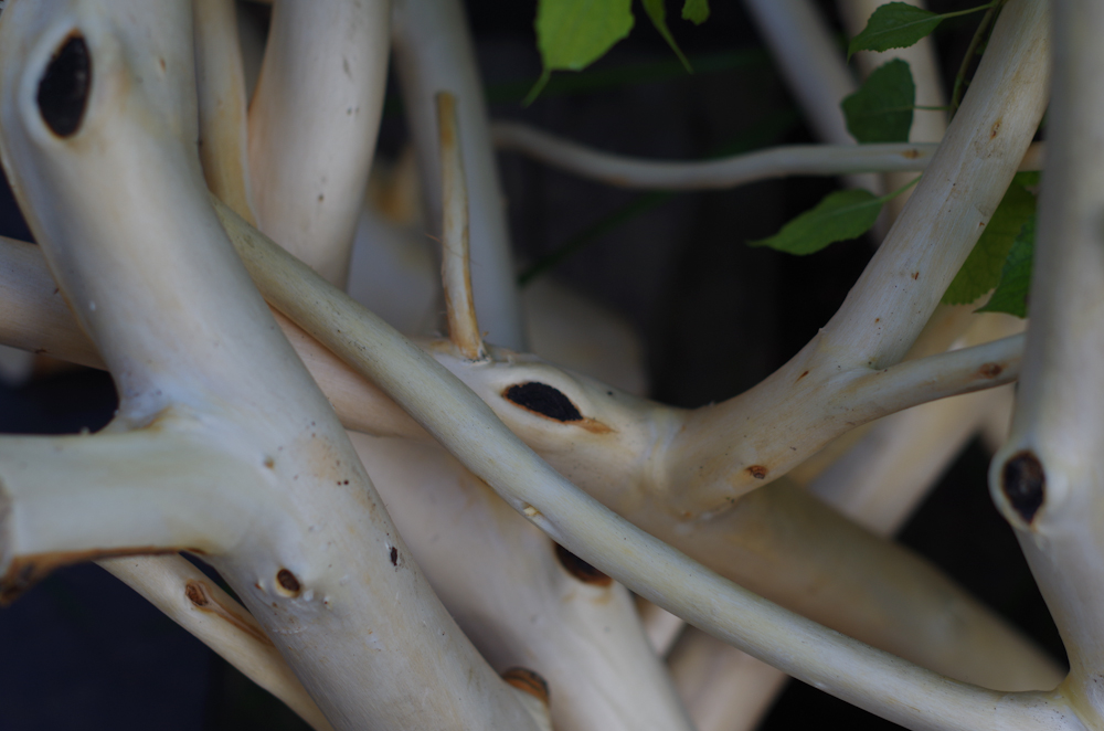 But I want to thank Clement, because some days ago he brought in the camp a lot of tree branches, taken from the street. At first I asked myself what we should have done with those. But Yuki started to use the leaves to make fertilizer, like he learned in Kenya, and he gave me a branch without bark. It was very beautiful, white, smooth and delicate. So I started to take off all the bark from the branches, before they became dry and it would be not possible anymore.
